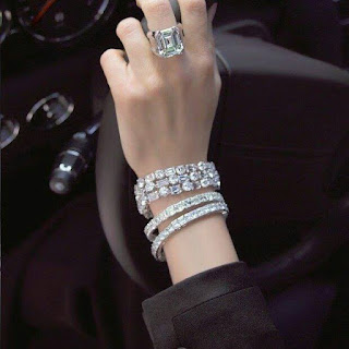 50 Carat Emerald cut cocktail ring and a matching bracelet with 100carat G color and flawless round and emerald cut diamonds as well 2 lines with Asher and princess cut diamonds , ready for formula one in Monte Carlo ,from the haute Joaillerie collection